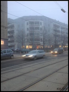 Gestern Nachmittag war es so nebelig, dass man von meinem Haustor nicht bis zur Linzerstraße gesehen hat. Das ist wirklich keine Strecke sind wahrscheinlich 25 Meter.